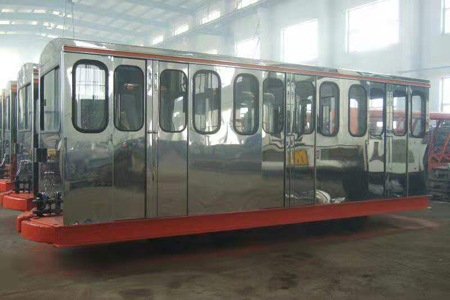 豪華型平巷人車用于礦山工作人員,并可運(yùn)送傷病員及其他救災(zāi)物資,由電機(jī)車牽引,組列運(yùn)行。此人車運(yùn)送人員能改善勞動(dòng)條件,減輕工作人員的勞累,保證運(yùn)輸安全,提高生產(chǎn)效率,是礦山安全生產(chǎn)和現(xiàn)代化礦井不可缺少的運(yùn)輸設(shè)備之一。